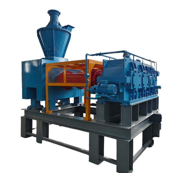 Feeding: Powdered or granulated materials are fed into the inlet between the rollers via a forced screw feeder.
